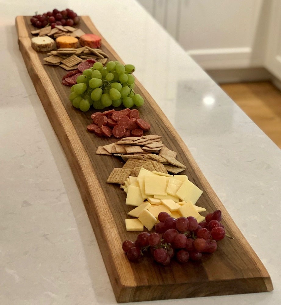 Our custom made, live edge Teak Wood Boards can be used to build your Grazing Boards, Charcuterie Boards, and Cheese Boards.