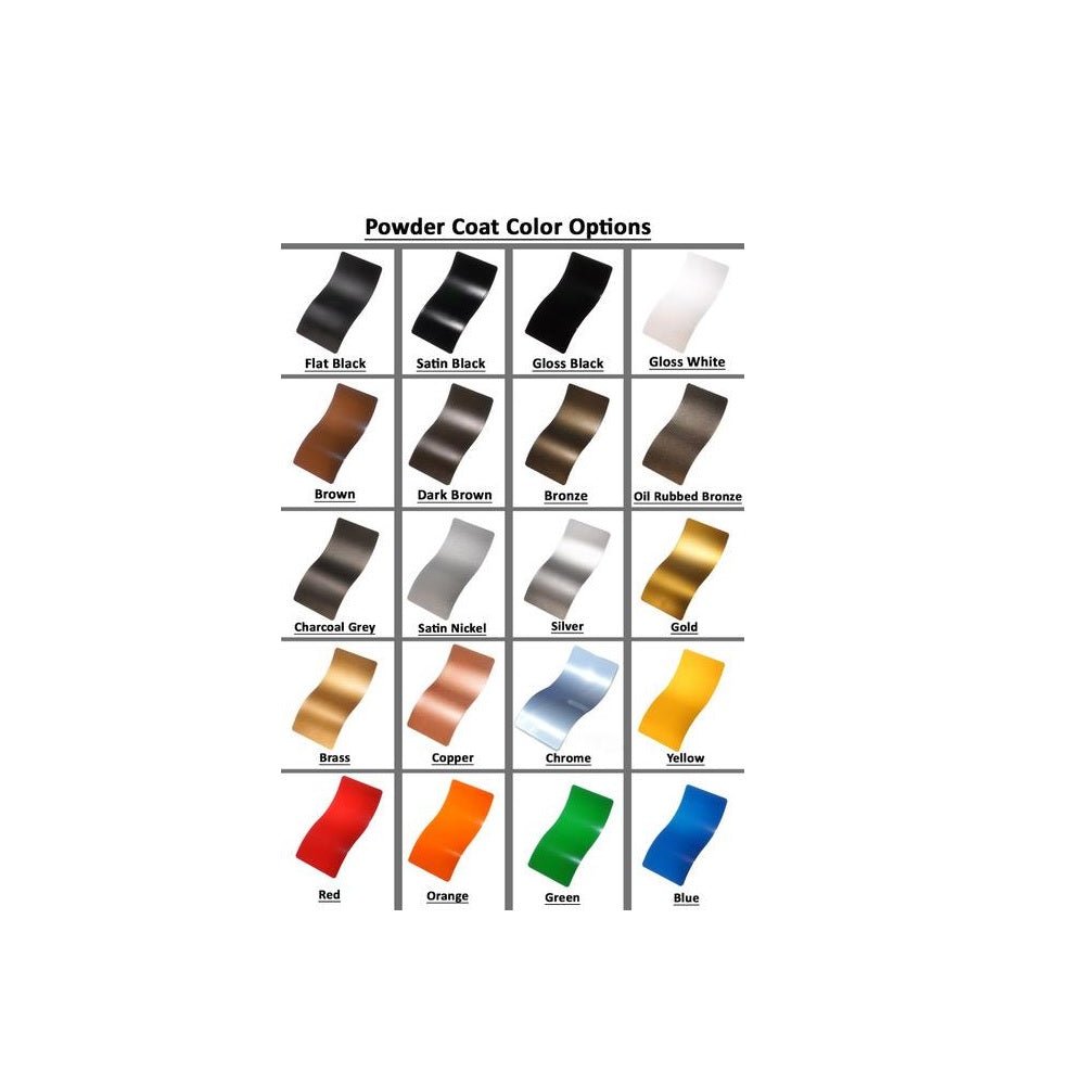 The base is a Steel powder coated, painted base. See color chart below in the images to choose from 20 available base colors. You can include the color base you want in the message box when you check out or you can contact us after your order is placed.