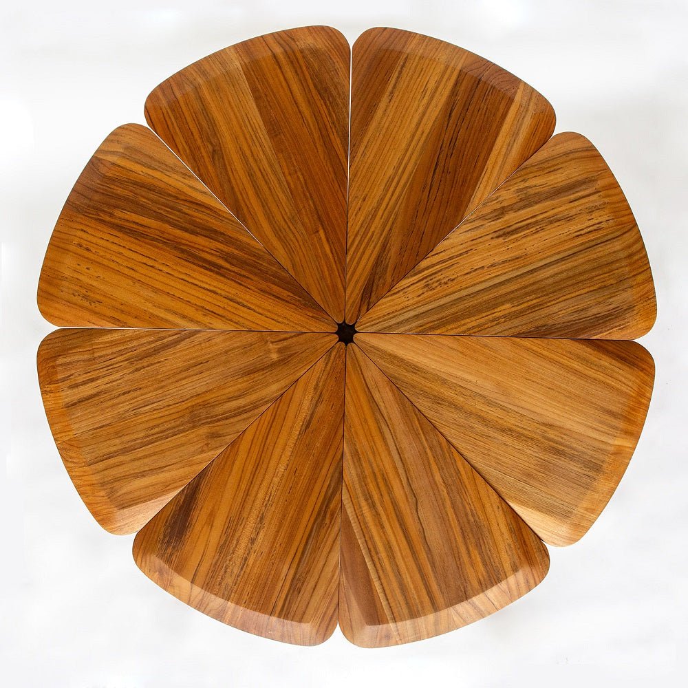 Our beautiful, one of a kind Teak Wood Petal Table.